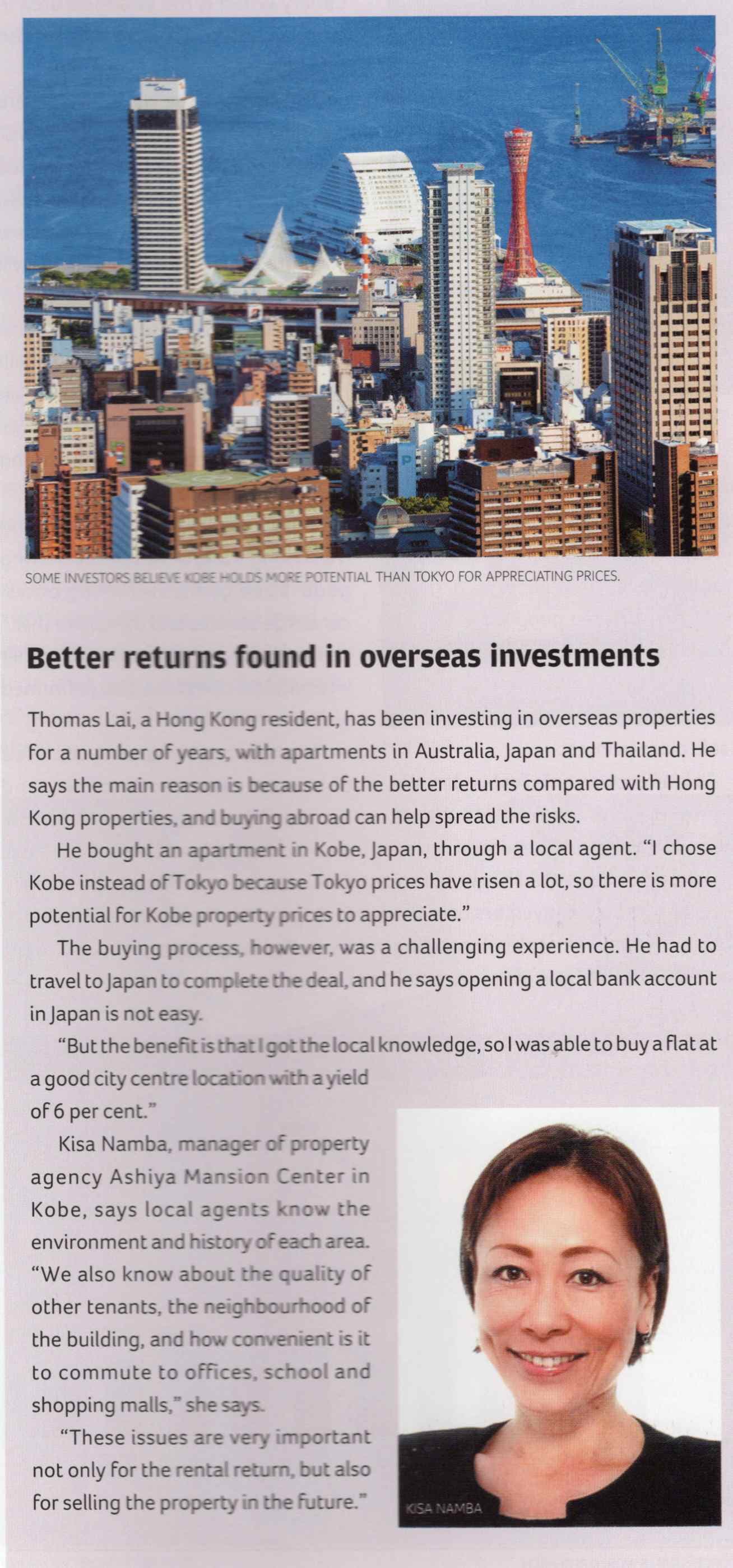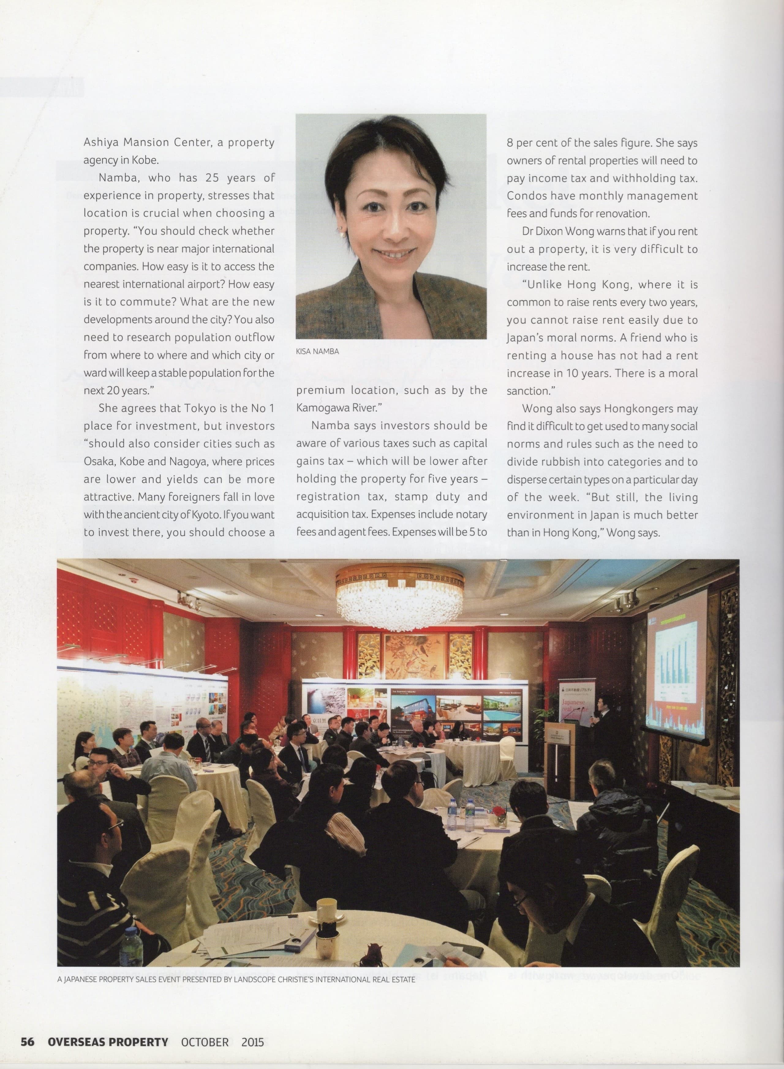 CASE STUDY 事例・実績 ☆ In 2014 and 2015, I had the opportunity to be interviewed by the South China Morning Post. ☆ In September 2002, I was honored to receive a five-star recognition as a real estate professional from The Ritz-Carlton, Osaka.